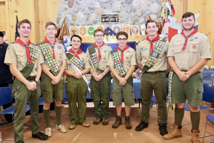 Seven — yes, seven — Scouts in Troop 94 attained the rank of Eagle Scout, the Boy Scouts’ highest award. Fellow scouts, family members, friends and dignitaries gathered inside the camp’s dining hall for Eagle Court of Honor ceremonies led by Troop 94 Scoutmaster Frederick Stumm and Co-Scoutmaster Philip Kenter.