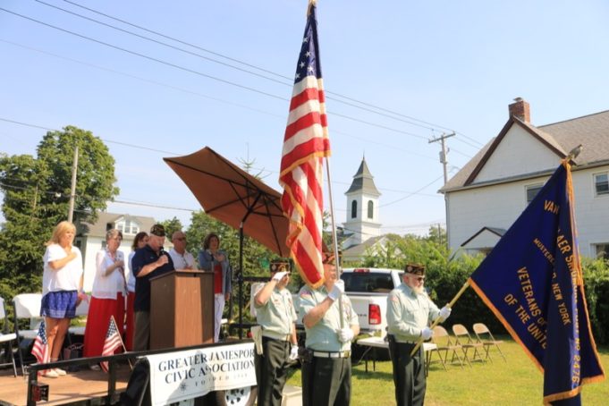 Greater Jamesport Civic Association president William Van Helmond spoke of the nation’s beginnings and the people who fought in the Revolutionary War to secure American independence and in subsequent wars to preserve it.