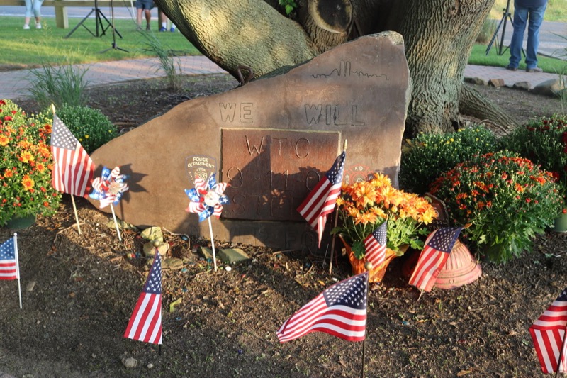 The Rev. Piotr Narkiewicz of St. Isidore Church in Riverhead offered prayers and told the crowd gathered in the park last night, “While it’s important to remember Sept. 11, it’s also important to remember Sept. 12, when people came together in unity and hope.”
