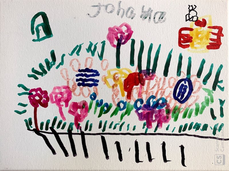 Last Christmas, we bought Jo a desktop easel, blank canvases and paint markers. The markers were easier for her to control than paintbrushes and the blank canvases seemed to “speak” to Johanna, inspiring her to draw. While she struggles to articulate and lacks fine motor skills to write – painting pictures of people, places, and things she loves gives Jo a creative way to express herself to the world.