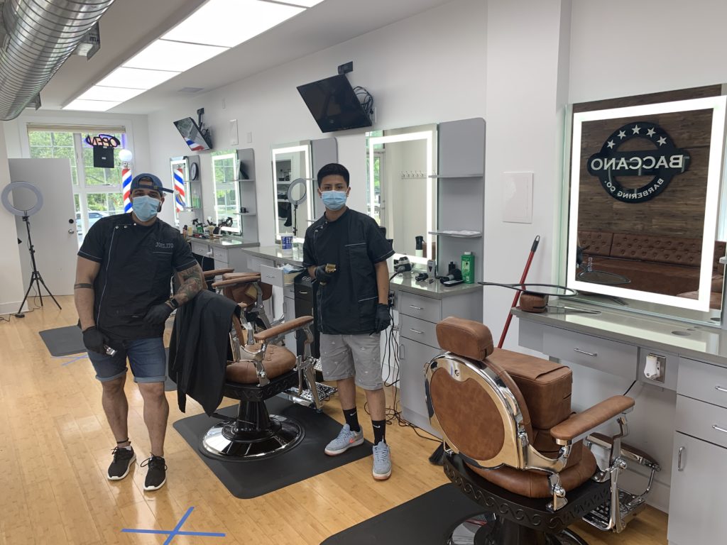 Main Street Haircutters on West Main Street, a downtown Riverhead mainstay since 1960, opened up bright and early this morning, with brothers Tony and Andy Balzano at their stations — now separated by more than six feet.
