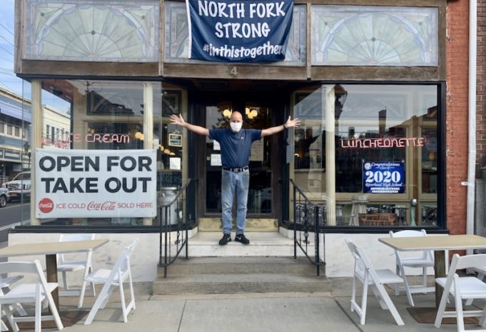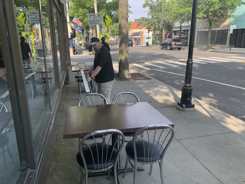 Jim Liszanckie, who with his wife Sunny owns and operates Sunny’s Riverhead Diner and Grill on East Main Street, was busy setting up outdoor tables and chairs this morning.