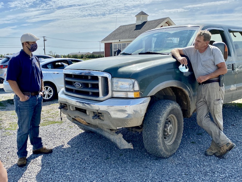 Calarco also visited Schmitt’s Farms in Riverhead, where farmer Phil Schmitt said his wholesale trade took a hit in the pandemic but retail sales at his roadside stand on Sound Avenue spiked.