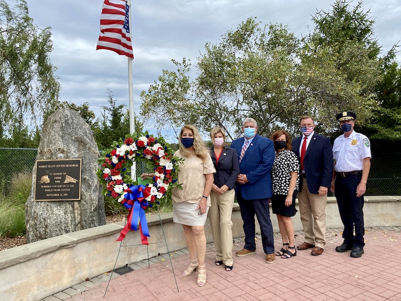 Riverhead Town officials laid a wreath today at the World Trade Center memorial in Calverton to commemorate the 19th anniversary of the Sept. 11, 2001 terrorist attacks.