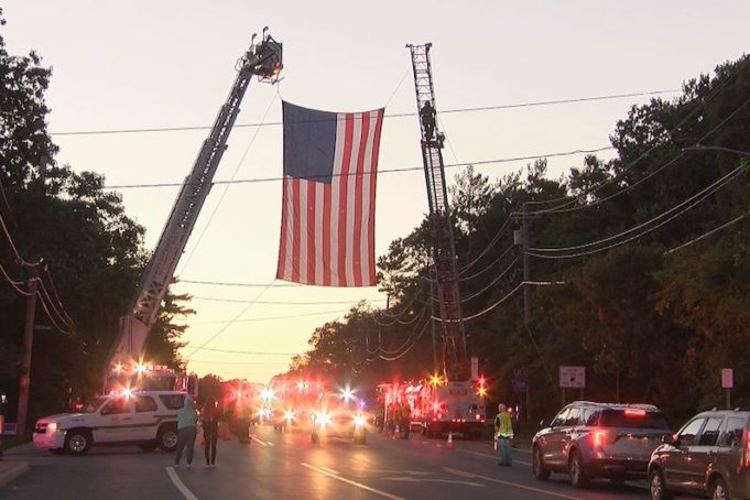 Dozens of motorcyclists, ambulances and fire trucks accompanied the Worthington procession from the Orient Point ferry to the Flanders Northampton Volunteer Ambulance headquarters on Flanders Road.