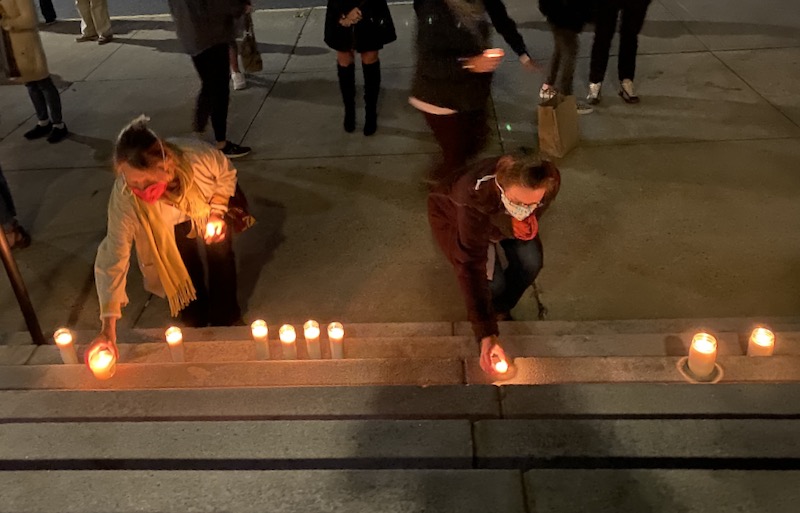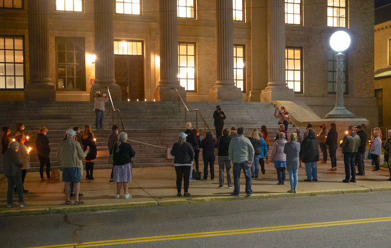 About 40 mourners gathered outside the courthouse for the service, one of many memorials held across the country at 8 p.m. last night. The nationwide memorial at courthouses was called for by a group called It’s On Us, an organization that fights against college sexual assault.