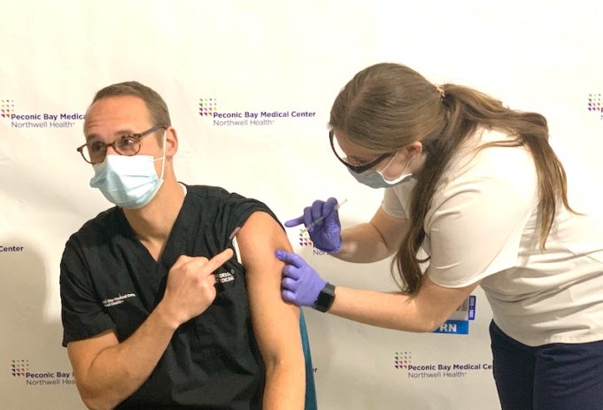 Frontline workers at Peconic Bay Medical Center started receiving COVID-19 vaccines today at the Riverhead hospital.