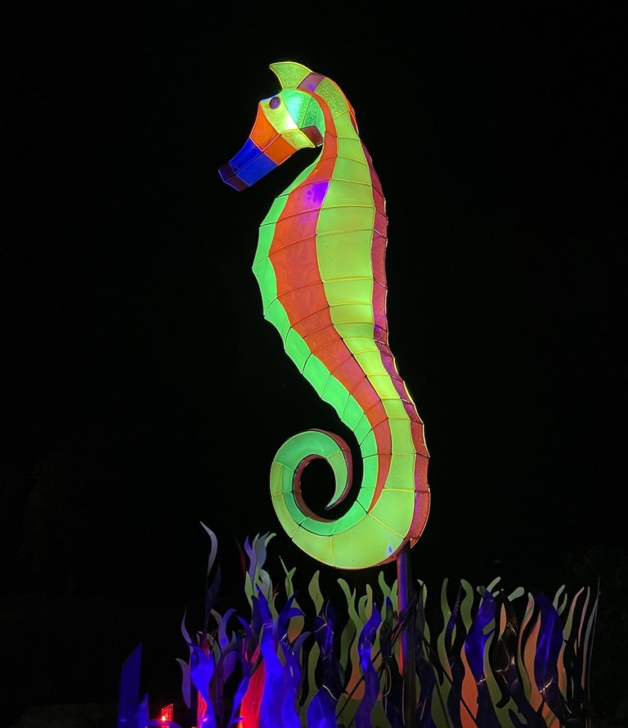 Despite threatening skies — which eventually produced a downpour — visitors strolled through the park after dark enjoying the illuminated artwork.