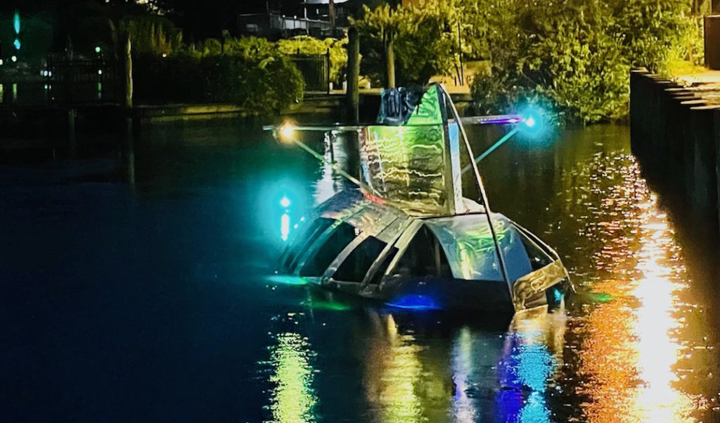 This year’s exhibit features two new sculptures by artist Clayton Orehek: a mutlicolored seahorse named Jewel and a 38-foot submarine called Nautilus 7 moored sits in the Peconic River.