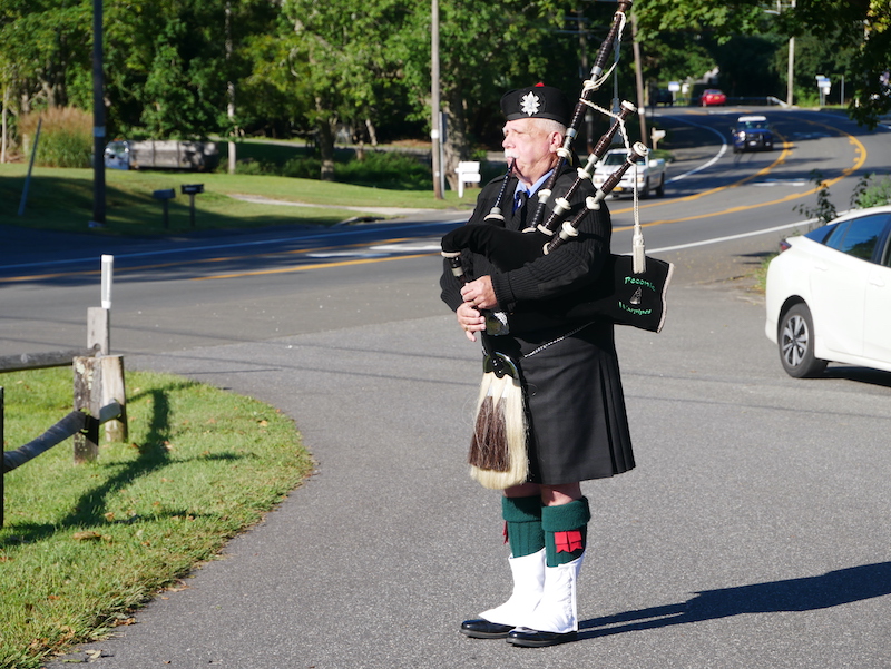 After ringing the bell and starting the sirens, the ceremony ended with the playing of “Amazing Grace” on the bagpipes by East Quogue Fire Department Captain Sean Murphy.