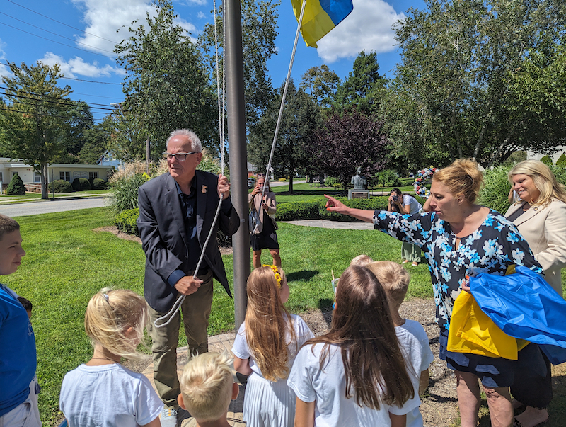 Riverhead’s Ukrainian community held its annual flag-raising ceremony at Town Hall today, in celebration of Ukraine’s Independence Day. Event officiants and town officials also spoke out in solidarity with Ukraine.