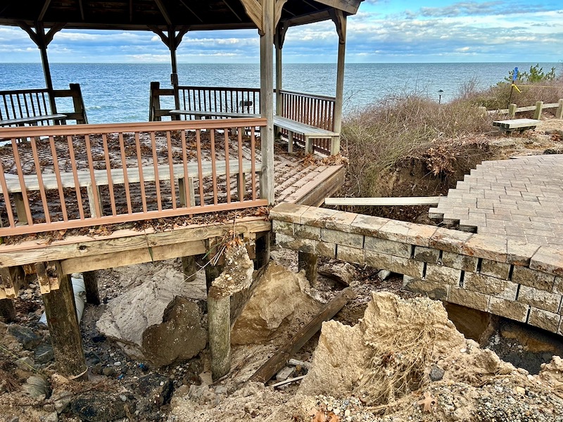 Riverhead Town Engineer Drew Dillingham said in an interview last week that the engineering department is working on repairing the damage. The repair will involve shoring up the bluff with large rocks and boulders to prevent damage from another washout in the future.