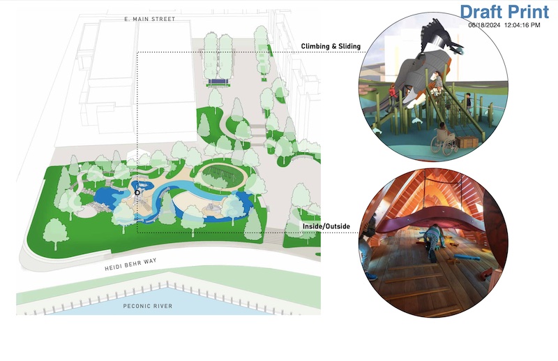 LVF Landscape Architects of New York City, a firm hired by the Town Board in March to develop the design, showcased their ideas for a plaza connecting Main Street to an expansive green space on the riverfront featuring landscaping, walking paths, seating areas, a playground, splash pad and an amphitheater.