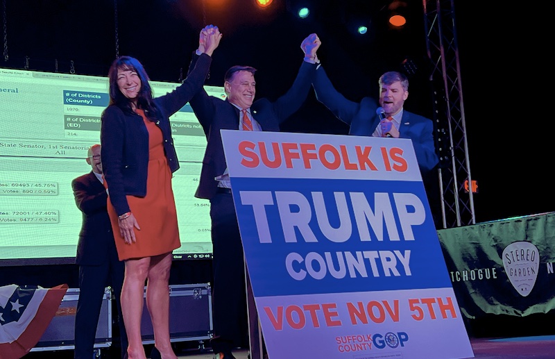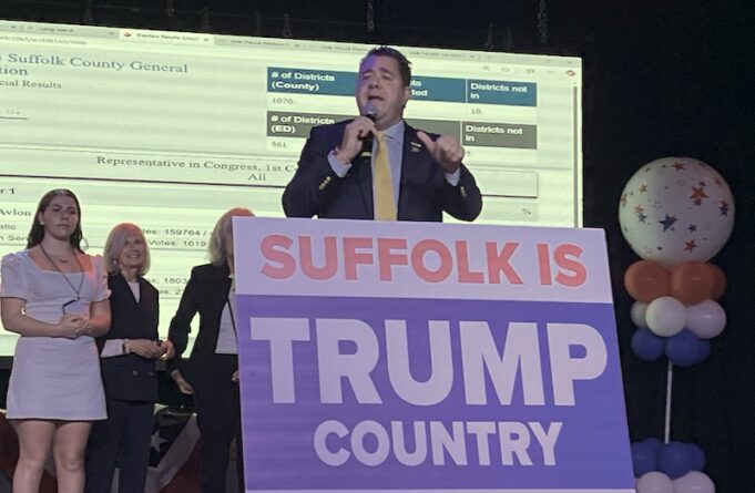 LaLota opened up a nearly 12-point lead early as the results were reported. He took the stage at Suffolk Republicans’ election night headquarters at the Stereo Garden in Patchogue shortly before 11 p.m. to declare victory.
