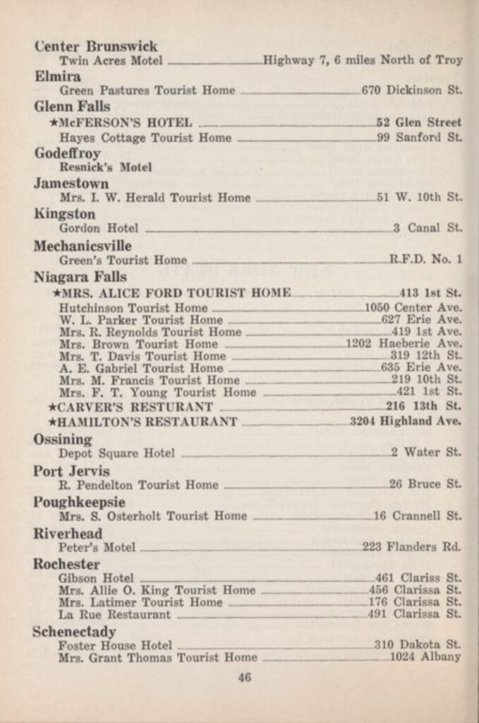 “Now things are different,” the foreword continues. ”The Negro traveler can depend on the ‘GREEN BOOK’ for all the information he wants, and has a wide selection to choose from. Hence this guide has made traveling more popular, without encountering embarrassing situations.”