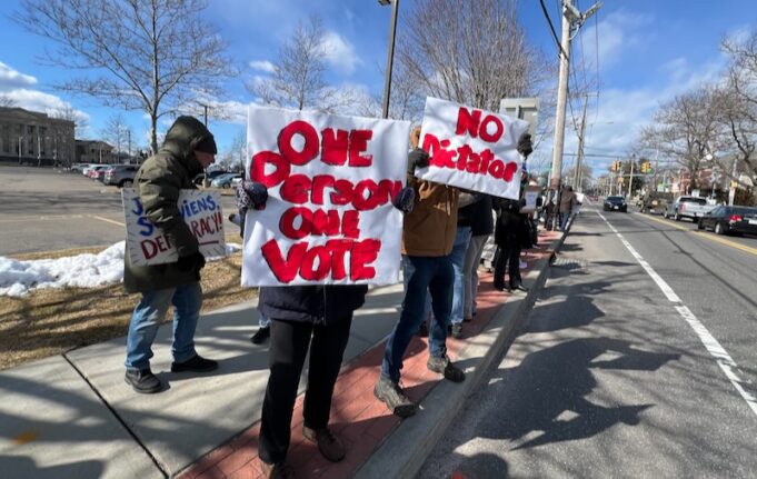 “We will not allow our democracy to fail,” the organizer of yesterday’s protest outside Riverhead Town Hall said.