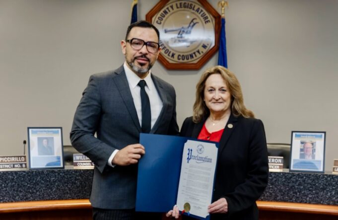 Suffolk County Legislator Catherine Stark honored Alexander Escobar as the First Legislative District’s Champion of Diversity for the year 2025.