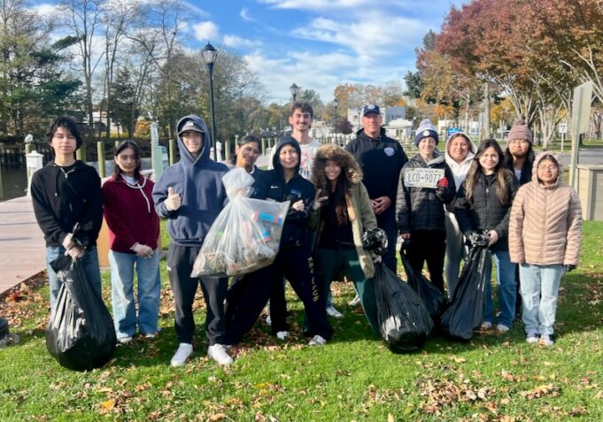 Riverhead High School Key Club participated in the town-wide fall cleanup on Nov. 1 by cleaning up along the Peconic Riverfront. Key Club members were accompanied by the club’s advisor Garrett Moore.