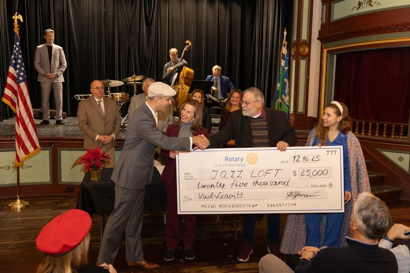 Members of the Riverhead Rotary Club presented The Jazz Loft with an oversized check representing a $25,000 donation to assist with the effort.