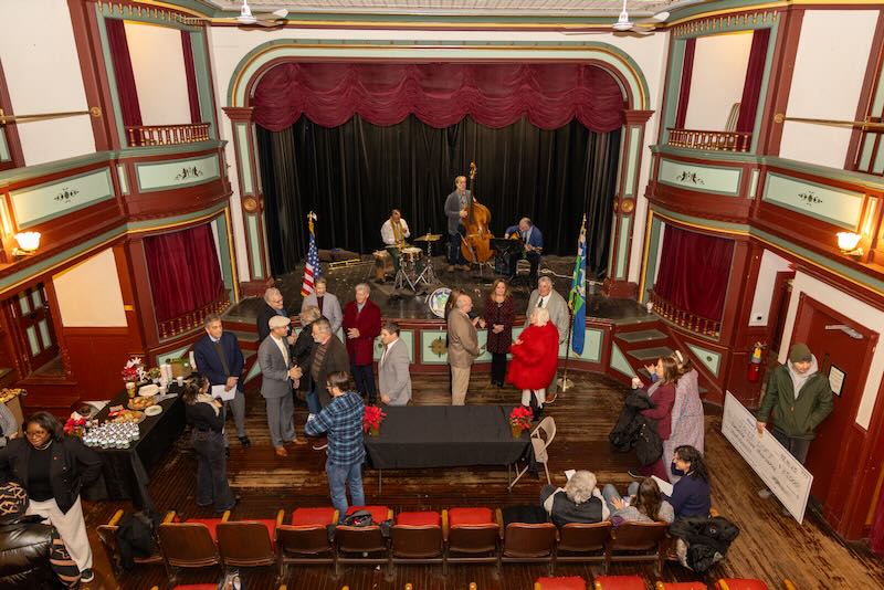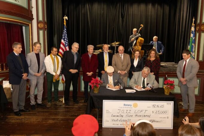 Town officials, Jazz Loft board members, donors and invited guests gathered in the second-floor performance space for a contract signing ceremony, as a jazz trio performed onstage.