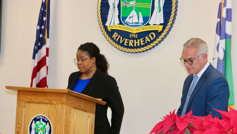 The Rev. Cynthia Liggon, senior pastor-elect of the First Baptist Church of Riverhead, gave the invocation, praying for unity and asking that the new administration be guided by “fair and just” decision-making.