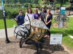 There’s a giant bee in downtown Riverhead — and it wants your empty cans. The new bottle-guzzling sculpture was unveiled Tuesday in downtown Riverhead.